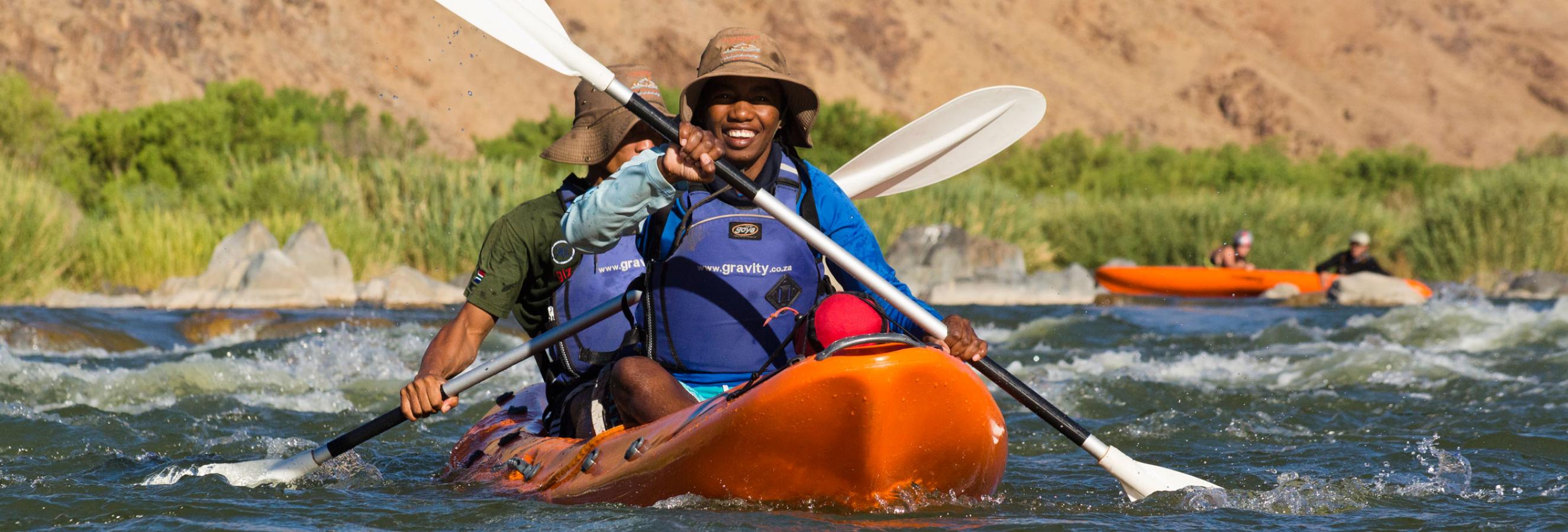 Desert Kayak Trails is an exciting new tourism product and is distinct from what other operators have to offer, in that clients arrive at a tented camp with ablution facilities at the end of every day. Furthermore, the trail route is along a section of the Orange River, which falls entirely within the Transfrontier Park.
